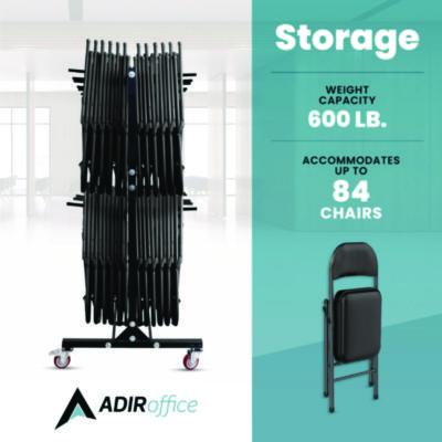 - Heavy-duty cart allows for a seamless deployment of up to 84 folding chairs and is constructed to universally accommodate most plastic and metal folding seats.