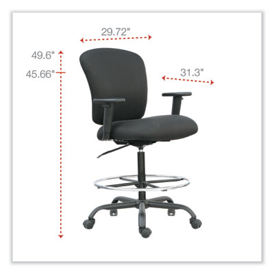 Generously padded, contoured seating that’s specifically designed and ideal for the big and tall user. Durable, reinforced seating structure and steel base for maximum, reliable support. Enhanced padding and fabrics for extra support throughout the workday. Welded, integrated foot ring for leg support. Height adjustable soft-padded T-arms for optimal arm positioning. Waterfall seat edge reduces pressure points at the back of the knees.