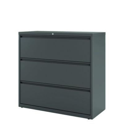 Get organized with a high-sided file cabinet with drawers that accommodate letter or legal-size filing. The counterweight prevents tipping. Visible, easy-access casters, two locking, two non-locking. Steel ball bearing slide suspension helps drawers glide smoothly and with ease. Built with 3/4 extension on box drawers and full-length extension on file drawers for maximum accessibility. Full-length pull permits easy opening. Box drawers include one divider and pencil tray.