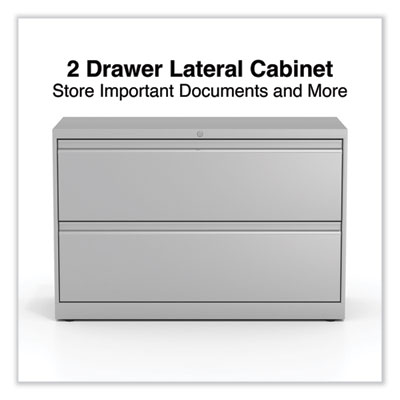 Drawers with side-to-side hang rails to accommodate letter/legal hanging files. Full drawer extension on steel ball bearing telescoping slide suspension helps drawers glide with ease. Stylish, full-width radius edge recessed pulls help to quickly open and close drawers. Anti-tipping interlock system allows only one drawer to open at a time. Single key core removable lock with two keys. Four adjustable leveling glides. Durable powder coated finish helps prevent scratches.