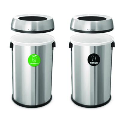Two bins with swing lids that can accommodate up to 17 gallons of waste each.