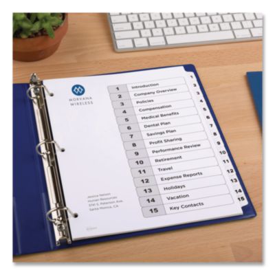 Avery Customizable TOC Ready Index Black and White Dividers, 15-Tab, 1 to 15, 11 x 8.5, 1 Set (AVE11142)
