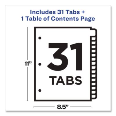 Avery Customizable TOC Ready Index Black and White Dividers, 31-Tab, 1 to 31, 11 x 8.5, 1 Set (AVE11128)
