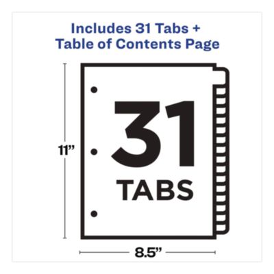 Avery Customizable TOC Ready Index Multicolor Tab Dividers, 31-Tab, 1 to 31, 11 x 8.5, White, Contemporary Color Tabs, 1 Set (AVE11846)