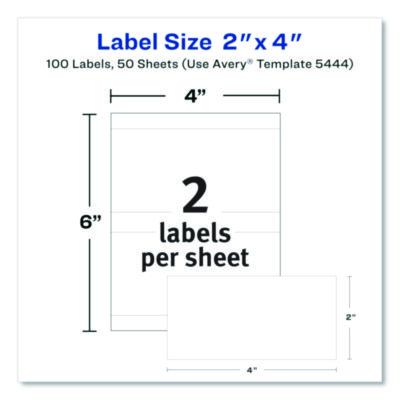 Avery Removable Multi-Use Labels, Inkjet/laser Printers, 2 X 4, White, 2/sheet, 50 Sheets/pack, (5444) (AVE05444)