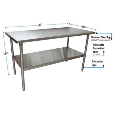 BK Resources Stainless Steel Flat Top Work Tables, 60w x 30d x 36h, Silver, 2/Pallet (BKE2VT6030)