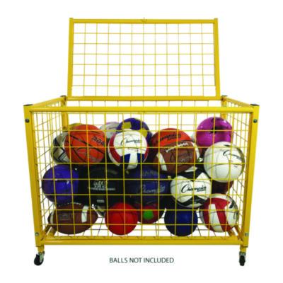 Holds up to 30 basketballs, soccer balls or playground balls.