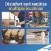 - Gentle enough to use around kids, pets and food contact surfaces; use for daycare equipment and desks, kennels, gym equipment, cafeteria table tops and much more.