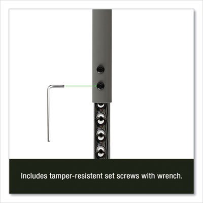 - Four height-adjustable steel legs with hairpin braces adjust in 1″ increments (speed-wrench included).