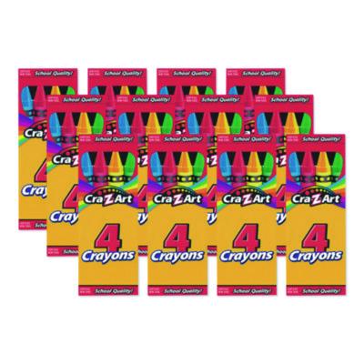 Cra-Z-Art Crayons, 4 Assorted Colors, 4/Box, 12 Boxes/Pack (CZA1021748)