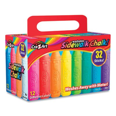 Cra-Z-Art Washable Sidewalk Chalk, 12 Assorted Colors, 32 Sticks/box (CZA108176)