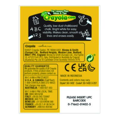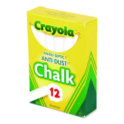 Crayola Nontoxic Anti-Dust Chalk, 3″ x 0.31″ Diameter, White, 12 Sticks/Box (CYO501402)