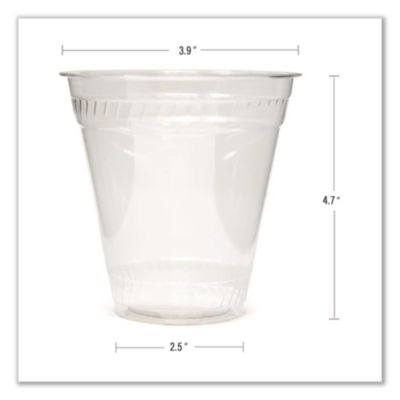 Sturdy, stylish cups make a positive impression, both aesthetically and environmentally. Each cup is constructed entirely of NatureWorks Ingeo biopolymer, a renewable plant-based resin that most people can’t tell apart from petroleum-based plastics. Rolled rim and stable base ensure sipping comfort and set-down stability. Cup Type: Cold; Capacity (Volume): 16 oz; Material(s): NatureWorks Ingeo Biopolymer Resin; Color(s): Clear.
